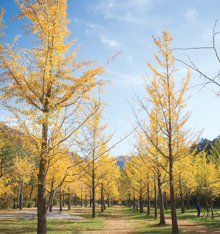 가을이면 잎이 황금빛으로 물드는 장관을 선물한다.