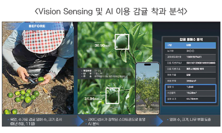또한 항공·위성영상 분석과 Vision Sensing 모델을 적용해 감귤 재배면적, 당근 결주율 등 정밀 생산량 분석도 자동화했다.