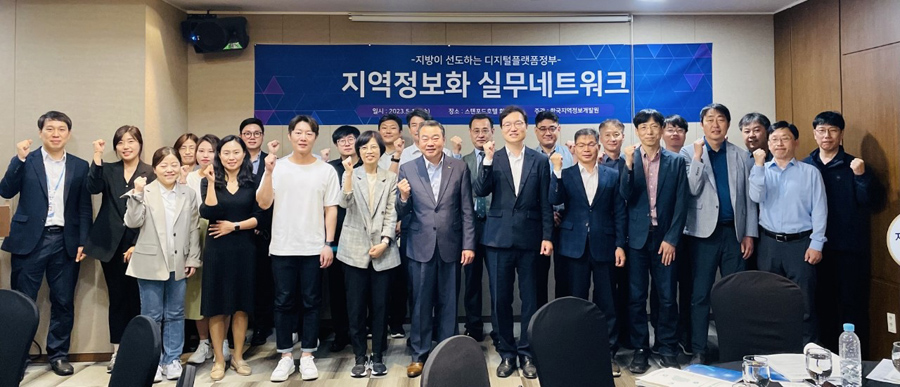 위한 지역정보화 실무네트워크’ 참석자들이 기념촬영을 하고 있다.