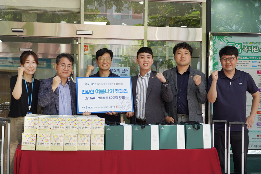 우리 원과 노동조합(이하 개발원 노사)은 3일(월), 마포노인종합복지관(이하 복지관)을 방문해 취약지역 경로당 노인을 위한 250만 원 상당의 장바구니 키트 50개를 전달했다. 기증행사에는 이재영 원장과 현대식 위원장, 김욱 관장을 비롯하여 관계자 10여 명이 참석했다. 후원된 장바구니 키트는 지난 6월 환경의 달을 맞아 한국지역정보개발원에서 임직원을 대상으로 진행한 ‘만보의 행복 캠페인’을 통해 마련됐다. ‘만보의 행복 캠페인’은 캠페인 기간 동안 임직원들이 모바일 걷기 앱 등을 활용해 걸음 수를 측정하고, 제출한 1일 최대 걸음 수를 합산하여 1만 보 당 장바구니 키트 1개를 적립해 기증하는 캠페인으로 올해가 세 번째다.