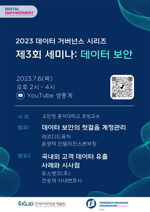 이재영 원장은 “디지털 전환 시대에 데이터가 항상 안전할 수 있도록 보호하고 조치하는 일은 필수적”이라며, “이번 세미나에서 다양한 데이터 보안 실사례가 공유되니 많은 분의 관심과 참여를 바란다”고 전했다.