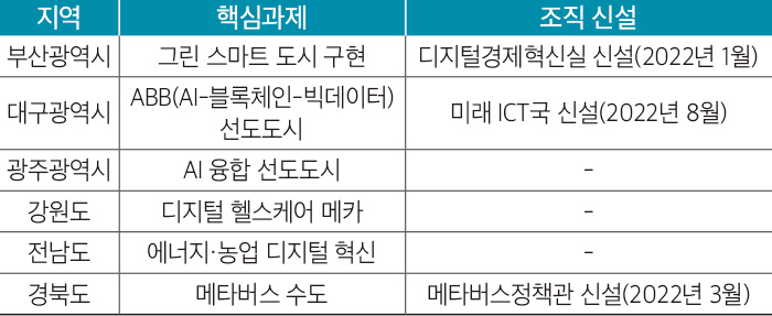 <지역별 디지털 핵심과제 및 조직 신설 현황>