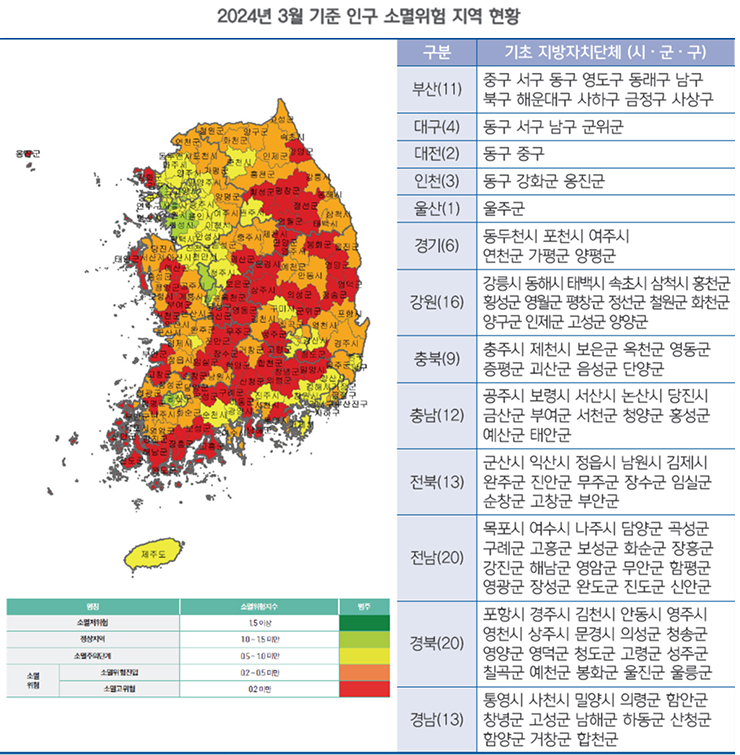 • 한국고용정보원, 2024년 3월 지방소멸위험지수.