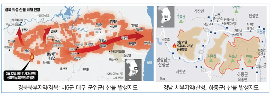 2025년 3월 발생한 산불은 경북 청도산불을 시작으로 전국적인 산불로 발생한 것으로 경북 6개 시군(안동, 의성, 청송, 영양, 영덕, 울진) 및 대구 1개군 (군위), 경남